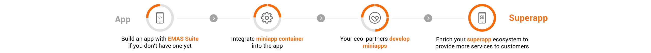 You can develop superapps for businesses or customers, with miniapps from you and your partners in the superapp ecosystem to provide comprehensive services in various industry sectors.